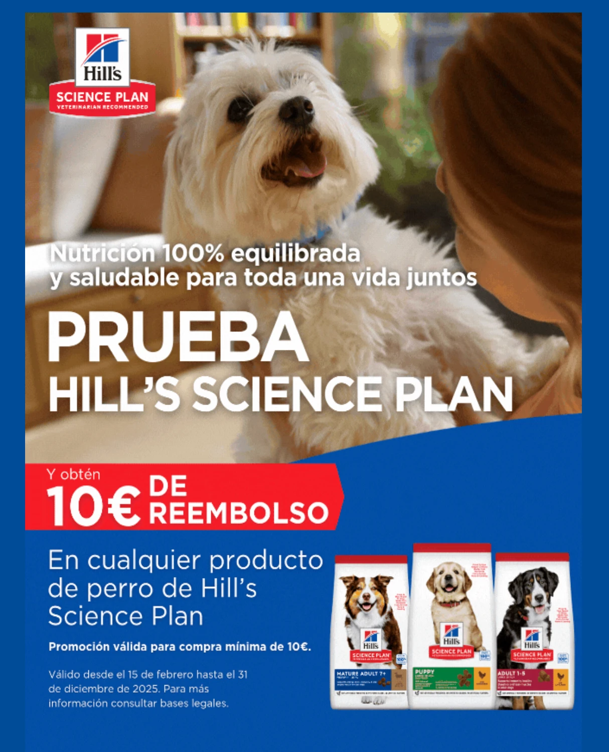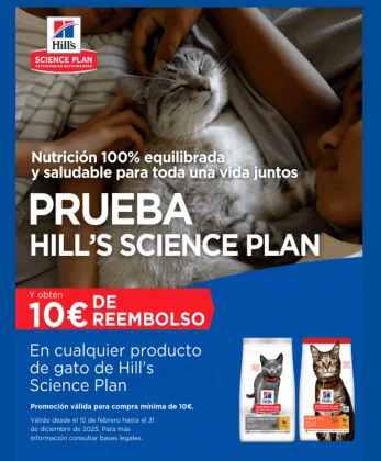 Hill’s pone en marcha esta promoción (válida para España, hasta el próximo día 31 de diciembre de 2025 o hasta alcanzar el máximo de reembolsos) en formato de «Reembolso», con el que podrás conseguir 10€ de reembolso para Hill’s. ¿Quieres saber cómo?