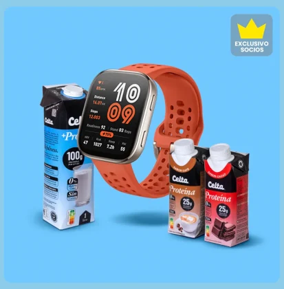 • Un lote de productos +Proteína de Celta y un reloj deportivo Amazfit Bip 6.