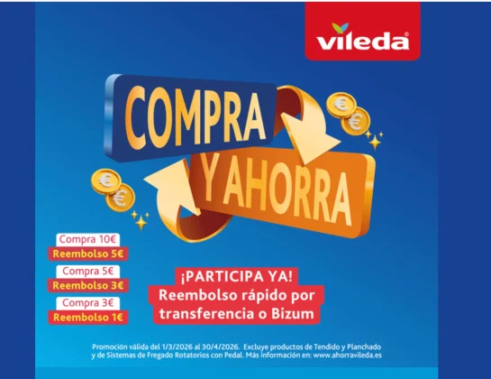 Vileda, realiza esta promoción (válida para España, hasta el próximo día 30 de abril de 2026), con la que te reembolsarán hasta 5€.